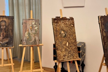 У Сенаті Чеської Республіки відбулася виставка ікон, написаних на кришках з-під артилерійських снарядів, присвячена викраденим Росією українським дітям.