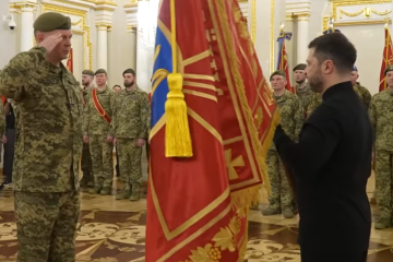 Президент України, Верховний Головнокомандувач ЗСУ Володимир Зеленський вручив бойовий прапор 412-й окремій бригаді безпілотних систем Nemesis за визначні заслуги у захисті державних інтересів.