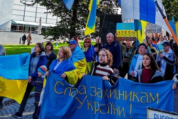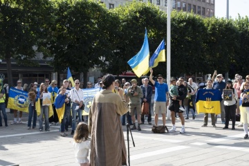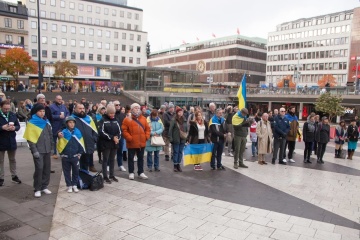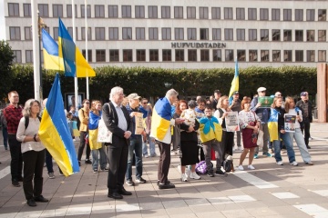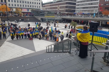 У шведській столиці Стокгольмі українська громада та місцеві активісти організували традиційну недільну демонстрацію на підтримку України.