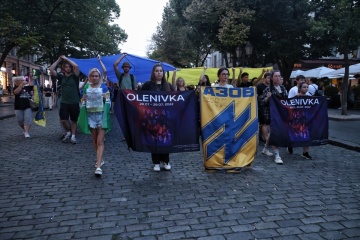 Львівські прикордонники на честь Дня Державного прапора дарують подорожнім прапорці та флаєри
