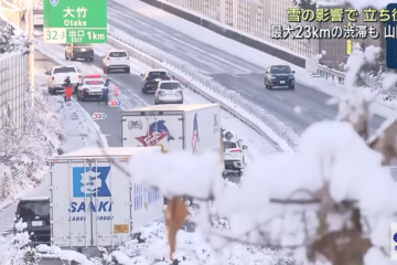 На заході Японії сильний снігопад призвів до утворення на швидкісній автомагістралі між префектурами Хіросіма та Ямагучі затору, що простягнувся на 23 кілометри.