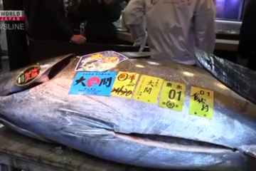 У понеділок вранці, 5 січня, на першому цьогорічному рибному аукціоні в Токіо гігантського блакитного тунця продали за рекордні 510,3 млн єн ($3,2 млн).