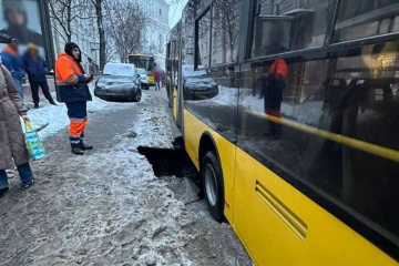 У Києві тролейбус провалився під асфальт. Пошкодження дорожнього покриття на вулиці Софіївській пов’язане з аварією на мережах водопостачання.
