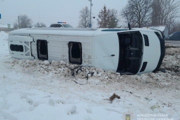 Поблизу села Лихачів Ніжинського району Чернігівської області ввечері 7 січня через складні погодні умови перекинувся автобус, що перевозив працівників підприємства, травмувалися і госпіталізовані 11 пасажирів.