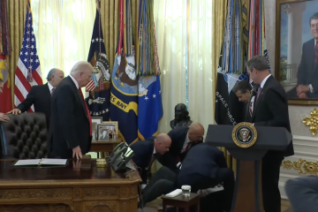 Один із гостей заходу, організованого президентом США Дональдом Трампом в Овальному кабінеті у четвер, втратив свідомість та впав за спиною глави Білого дому, через що захід був терміново припинений, а пресу попросили залишити приміщення.