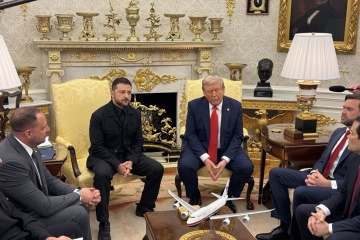 Президент України Володимир Зеленський подарував Президенту США Дональду Трампу ключку для гри у гольф та отримав від американського лідера символічні ключі від Білого дому.