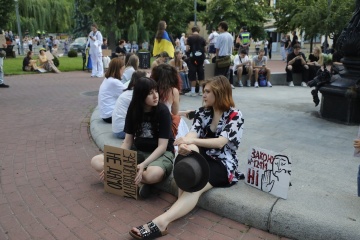 У столиці на площі біля театру ім. Івана Франка зібрались мітингувальники, які виступають проти ухваленого парламентом закону про зменшення повноважень антикорупційних органів - НАБУ та САП, та вимагають накладання вето Президента.