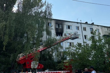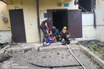 У Куп'янську Харківської області рятувальники Державної служби з надзвичайних ситуацій під російськими обстрілами вивели 82-річну жінку з дев'ятиповерхового будинку, який горів унаслідок удару безпілотника.