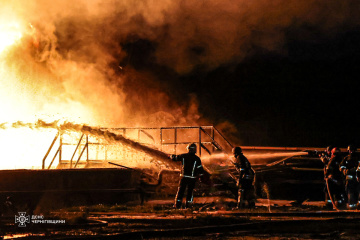 Російські війська атакували ввечері у понеділок дронами об’єкт цивільної інфраструктури у Ніжинському районі на Чернігівщині, що спричинило пожежу.