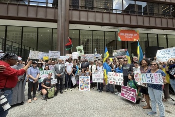 Український конгресовий комітет Америки (УККА) відділення Іллінойс долучилася до вшанування Всесвітнього дня біженців – активісти прийшли вулицями Чикаго з чорними стрічками на українських прапорах на знак скорботи за жертвами російського терору.