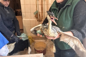 Одесити з самого ранку 24 грудня приносять до міського зоопарку птахів, які забруднилися внаслідок витоку олії у море.
