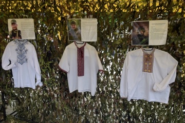 У Вінниці на Європейській площі до Міжнародного дня вишиванки влаштували виставку вишитих сорочок загиблих захисників «Їх вдягали герої».