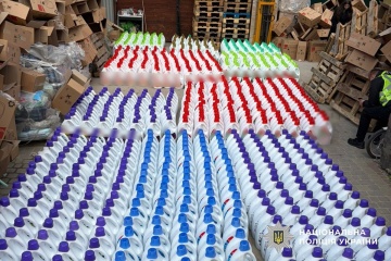 У Києві виявили склади з близько 50 тонн нелегальної спиртової суміші, яка мала стати горілкою, ромом та віскі відомих торгових марок.