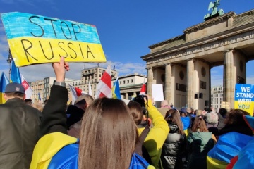 Українська громада в Мілані провела мирний флешмоб на підтримку українського спортсмена Владислава Гераскевича, якого дискваліфікували з Олімпійських ігор 2026 через намір виступати в «Шоломі пам'яті».