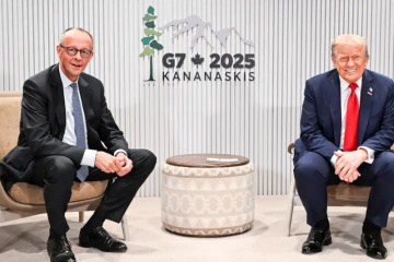 Канцлер Німеччини Фрідріх Мерц під час 20-хвилинної бесіди з президентом США Дональдом Трампом у кулуарах саміту «Групи семи» (G7) у канадському Кананаскісі закликав посилити тиск на РФ.