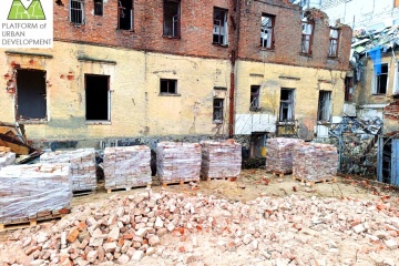 У Харкові демонтували зруйнований російським ударом житловий будинок 1860-их років на майдані Героїв Небесної Сотні, уламки та цеглу з нього сортували волонтери. Відібрані матеріали можна використовувати для відбудови інших архітектурних пам’яток.