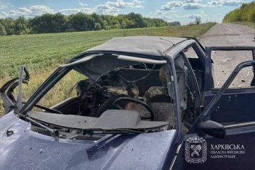 Поблизу села Петрівка Золочівської територіальної громади російські військові вдарили ударним безпілотником по цивільному авто, внаслідок чого загинули чоловік і жінка.
