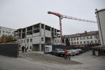 У Запоріжжі триває будівництво нового хірургічного корпусу обласної дитячої лікарні. Підрядник працює цілодобово. Вже виконано 75% робіт.