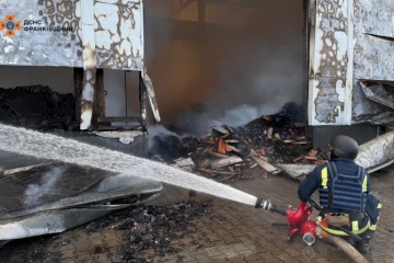 В Івано-Франківській області рятувальники ліквідували масштабну пожежу складських приміщень на трьох осередках, що виникла внаслідок російського обстрілу.