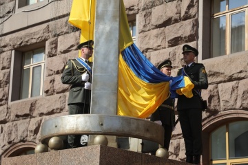Державний Прапор України урочисто підняли біля Київської мерії.