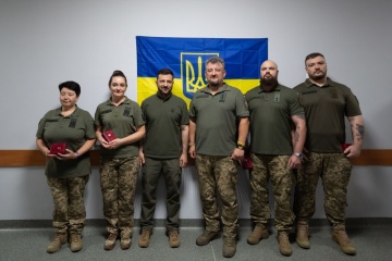 Президент Володимир Зеленський відвідав один із медичних закладів Харкова, де поспілкувався із захисниками, а також відзначив бойових медиків.
