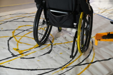 У Львові ветеран, який внаслідок поранення не відчуває тіла нижче грудей, встановив рекорд України — створив мистецьке полотно за допомогою крісла колісного.