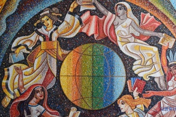 У Львові в будівлі колишнього видавництва «Вільна Україна» з 500 тисяч шматочків смальти відновили знищену мозаїку "Інформаційний простір" художника Богдана Сойки.