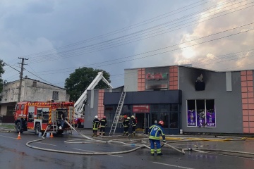 У Радехові на Львівщині вогнеборці ліквідовують пожежу будівлі. Орієнтовна площа загоряння - 900 кв м.