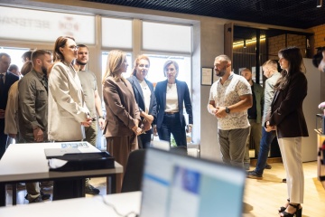 Дружина Президента України Олена Зеленська відвідала простір Veteran Space в Ірпені та Центр первинної медико-санітарної допомоги в Бучі Київської області.