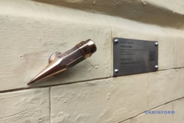 У столиці відкрили 51-ту мініскульптуру в межах мистецького проєкту "Шукай!" – сточений олівець, який розмістили на фасаді видавництва “Смолоскип”.