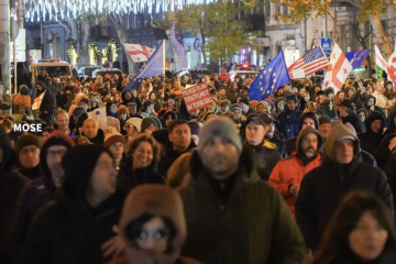 Сотні людей ввечері 13 грудня вийшли на акцію протесту в центрі грузинської столиці Тбілісі з вимогою міжнародного розслідування для встановлення спецзасобів, які застосовувалися під час розгонів мітингів наприкінці 2024 року.
