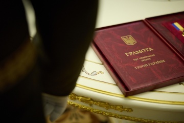 Президент Володимир Зеленський відзначив орденами "Золота Зірка" та іншими державними нагородами військових Сил оборони України і передав нагороди родинам героїв, яким звання присвоєно посмертно.