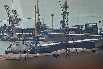 У морському порту тимчасово окупованого Маріуполя російські загарбники завантажують судна з вкраденим українським зерном та вугіллям.
