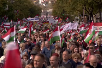 У Будапешті у четвер пройшли дві паралельні демонстрації прихильників прем’єр-міністра Угорщини Віктора Орбана та його головного політичного суперника Петера Мадяра, в яких взяли участь сотні тисяч угорців.
