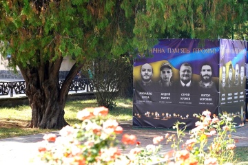 В Ужгороді портрети загиблих воїнів перенесли до пам'ятника "Хрест хоробрості захисникам України" у сквері на площі Петефі.