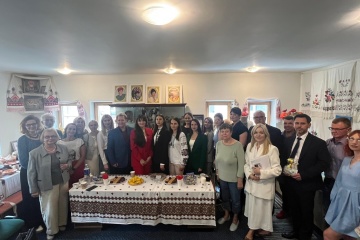 Посол в Литві Ольги Нікітченко під час візиту до Клайпеди зустрілася з керівницею Українського культурно-просвітницького центру «Родина» Катериною Тригуб, викладачами недільної школи, волонтерами, керівниками творчих колективів Центру та представниками української громади міста.