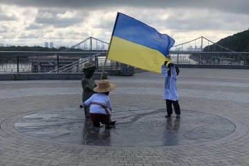 У Києві з нагоди Дня Незалежності переодягли скульптури малюків-засновників