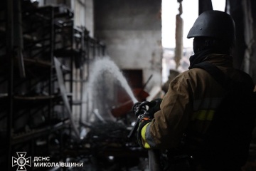 У Миколаєві загасили пожежу складського cільськогосподарського приміщення, яка виникла після атаки російських безпілотників.