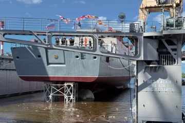 У російському Санкт-Петербурзі зі стапелів спустили на воду фрегат «Адмирал Амелько», що має бути носієм гіперзвукових ракет 3М22 «Циркон».