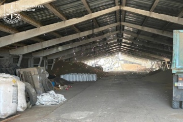 У Кривому Розі ворог поцілив по складу з продуктовими наборами для криворіжців та ВПО. Понад 60 тисяч продовольчих наборів.
