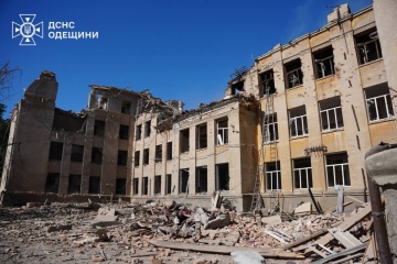У Білгород-Дністровському Одеської області кінологи із собаками перевірили на наявність постраждалих завали одного з навчальних закладів, зруйнованого внаслідок російського ракетного удару 23 червня.
