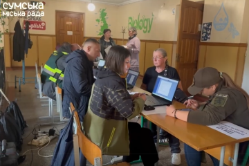 У Сумах на місці атаки російської ракети працює оперативний штаб в укритті місцевої школи.