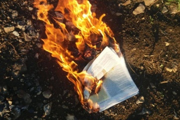 Активісти Руху спротиву «Жовта стрічка» в тимчасово окупованих Луганську та Перевальську спалили проросійські пропагандистські газети «Наша народная трибуна».