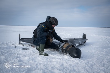 Сапери Державної служби з надзвичайних ситуацій успішно знешкодили російський безпілотник, виявлений на льодовому покриві Київського водосховища.