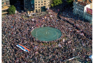 У кількох сербських містах тисячі людей вийшли на протестні марші в середу, щоб висловити опір правлінню президента Александара Вучича.