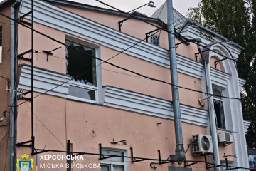 У Херсоні показали наслідки вечірньої ворожої атаки - під ворожим вогнем опинився Центральний район, двоє людей поранені, є пошкодження, у місті не працюють тролейбуси.