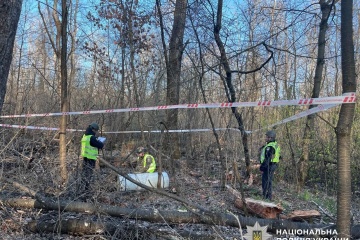 На території одного з лісових масивів Київської області виявили фрагменти російського БПЛА «Герань-2».