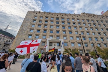 У Тбілісі біля будівлі уряду Грузії відбулася акція під гаслом «Війну розпочала Росія»