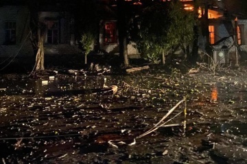 Російські військові напередодні пізно ввечері вдарили безпілотниками по житловому району міста Новгород-Сіверський на Чернігівщині, внаслідок чого пошкоджені адмінбудівля, будівля підрозділу ДСНС, житлові будинки, автівки.