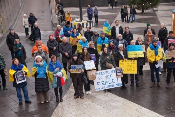 У шведській столиці Стокгольмі українська громада та місцеві активісти організували традиційну недільну демонстрацію на підтримку України.